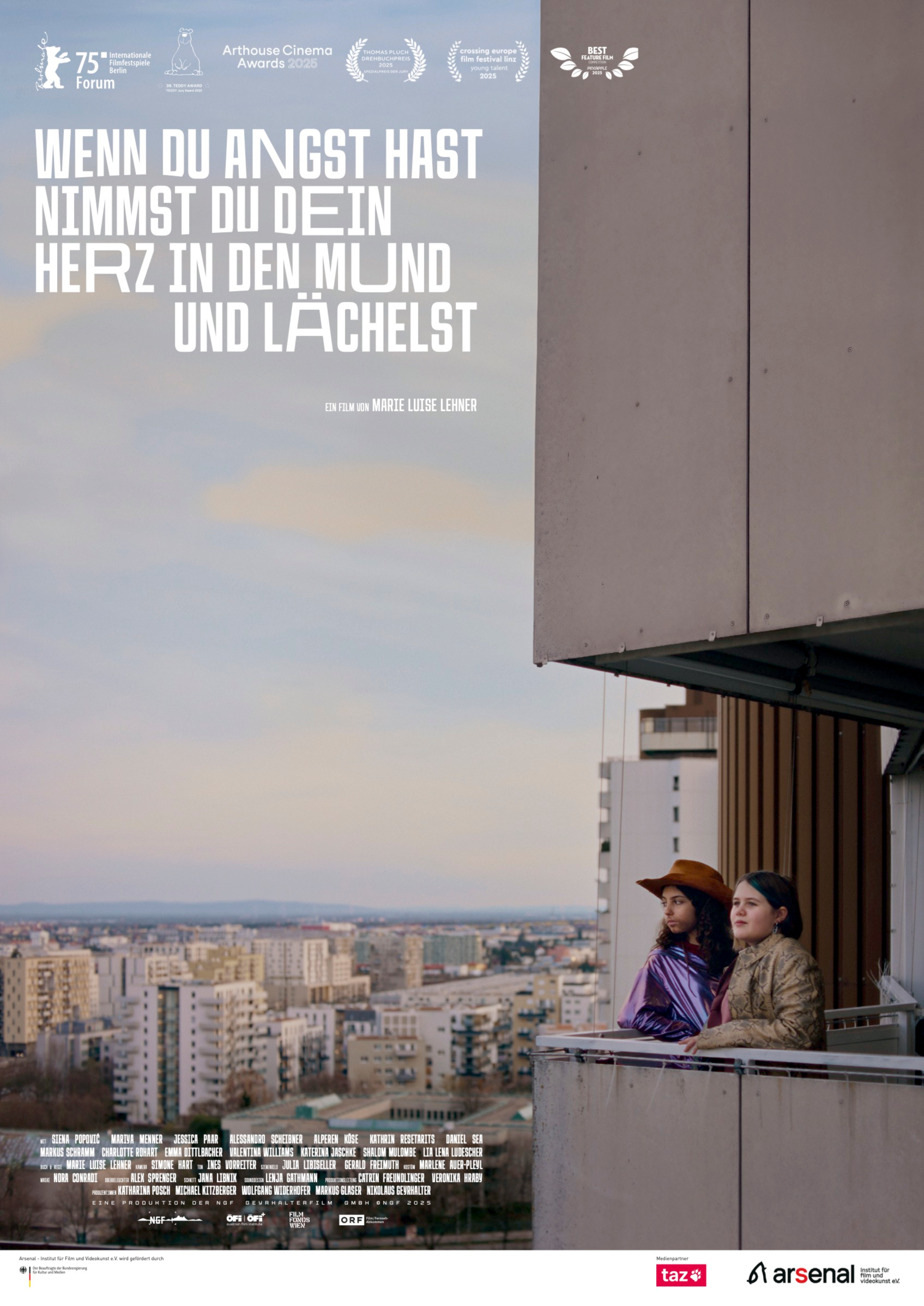 Marie Luise Lehners Zum Inhalt: Coming-of-Age-Film ist voller Leichtigkeit und Sympathie für seine Figuren. Wenn Anna im Einkaufswagen durch ihr Viertel cruist oder mit Mara im Kettenkarussell über Wien schwebt, erscheint die Stadt in warmen, leuchtenden Farben (Glossar: Zum Inhalt: Farbgestaltung). Ein wiederkehrendes Motiv ist das des Verkleidens und Performens: "Ich war irgendwie nicht richtig angezogen", fasst Anna ihren ersten Tag am Gymnasium zusammen und versucht zunächst, sich möglichst genau an die Erwartungen des neuen Umfelds anzupassen. Beim gemeinsamen Verkleiden mit Mara, mit Cowboyhut, Bart und Glitzerjacke (Glossar: Zum Inhalt: Kostüm/Kostümbild), entdeckt sie dagegen ein Gefühl von Freiheit. Seine Alltagsbeobachtungen unterbricht der Film mit surrealen Momenten oder spontanen Musikeinlagen (Glossar: Zum Inhalt: Filmmusik), die gelegentlich Zum Inhalt: die vierte Wand durchbrechen und das Publikum direkt ansprechen. Der Soundtrack aus Punk, Elektro und Indie-Pop mit feministischen Song-Texten erfüllt eine Kommentarfunktion: Er öffnet einen lyrischen Raum außerhalb des Anpassens und Dazugehörens und kehrt so Annas innere Veränderung nach außen.